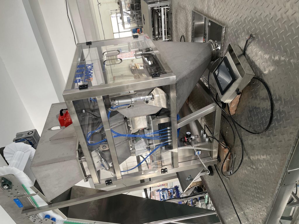 Hierdie eenheidsmasjien is 'n spesiale ontwerp om ysblokkies en ysbuisies in sagte plastieksak te verpak. Met die funksie van ysblokkievoeding, weeg, vul, outomatiese sakvormende verseëling en vol sakuitvoer. Die hoofmasjien het die funksie van saktel en datumkodering .