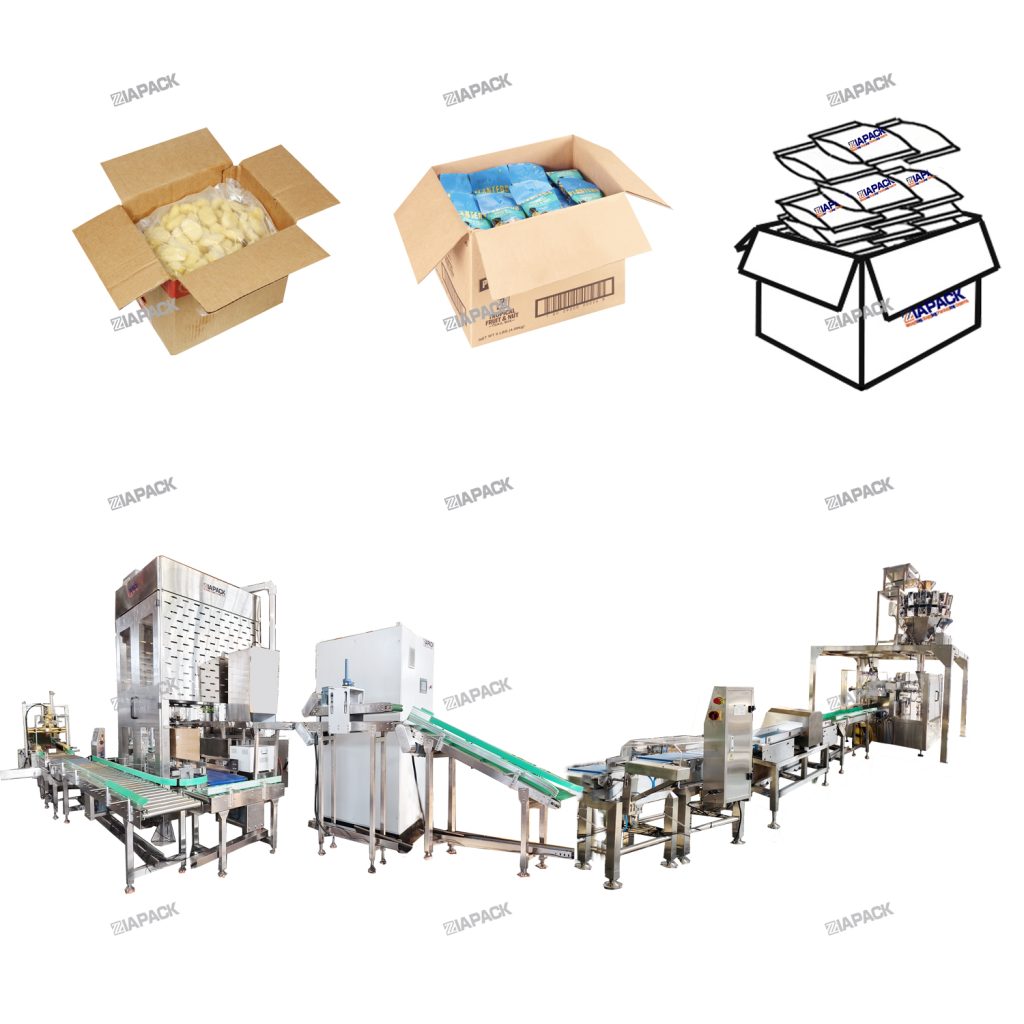 Inleiding:This unit is mainly used for weighing and packaging of 1-3 kg pet food in different bag types, as well as the packing of packaging bags and palletizing of full boxes at the back end. It adopts two packaging forms: pre-made bags and roll film bags. You can freely choose different bag types such as doy bags, zipper bags, box bags, pillow bags, gusseted bags, flat bottom bags, etc. According to the production needs of customers, different bag making and packaging forms are selected and matched with the back-end automatic counting, packing and stacking. The main machine of the packaging and weighing machine and all parts in contact with the material are made of 304 stainless steel. It adopts Japanese Orion vacuum pump, Festo pneumatic components, Siemens touch screen, PLC, and servo motors are all Panasonic brands. The whole machine has stable performance and high degree of automation. It is the best choice for major companies to realize automated packaging production.