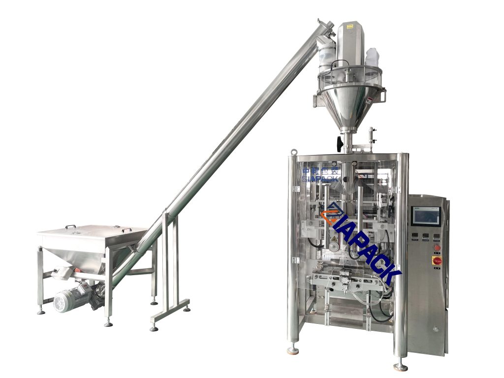 Auger vul masjien Melkpoeier klein vertikale vorm vul seël masjien word hoofsaaklik gebruik vir verpakking poeier en meelprodukte, soos voedingspoeier, baba kos, sesam pasta, sout, suiker, meel, stysel, geure, melkpoeier, albumen poeier, ens.