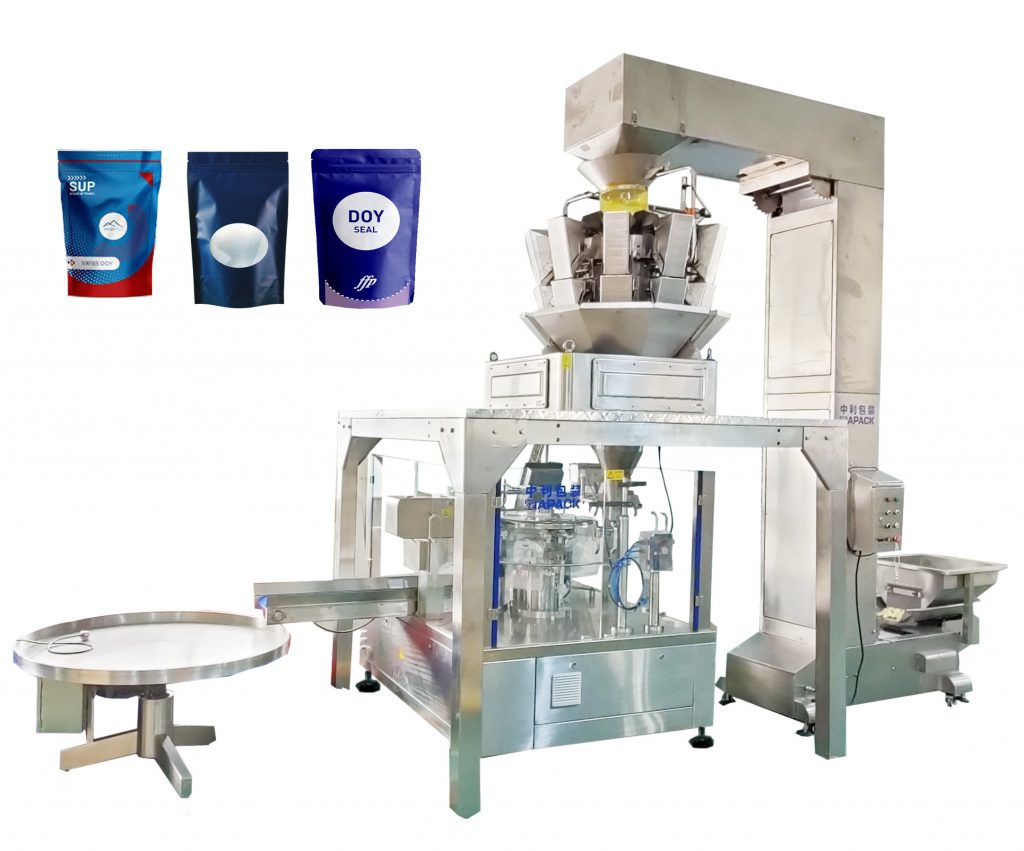 Voorafgemaakte sakkie vul- en seëlmasjien, saamgestel uit 8 werkstasies van doeltreffendheid en stabiliteit, beklemtoon die pakket van staande sak, rits sak, spuit sak, en verskeie voorafgemaakte sakke. Gekombineer met verskillende doseringstelsels (kombinasie weeg / lineêre weeg- / snyskroef / suier vulmiddel) en outomatiese hefbande, word dit wyd toegepas op korrels, vloeistof en poeier.